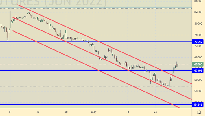 Покупка: при откате к 62000. Стоп: 60000. Цель: 73000. Кто в позиции от 62000, перенесите стоп на 60000. Цель: 73000.