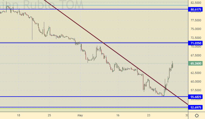 Покупка: при откате к 61.00. Стоп: 59.00. Цель: 71.00. Кто в позиции от 61.00, перенесите стоп на 59.00. Цель: 71.00.