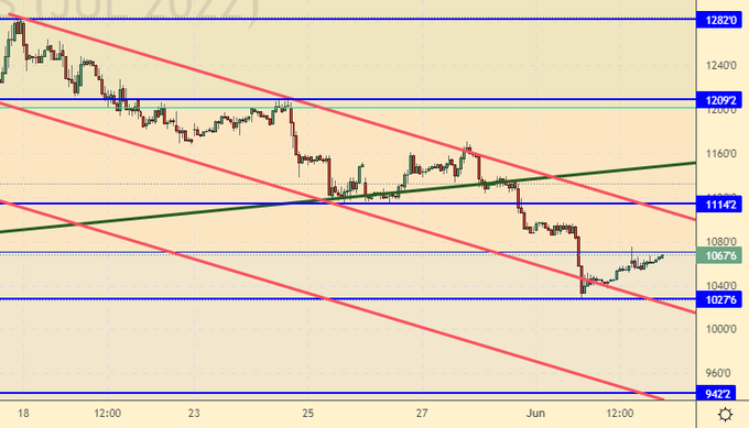 Скорее всего, к концу июня выяснится, что американские фермеры сократили площади под кукурузу, так как цены на удобрения сильно ушли вверх. Это приведет к пересмотру объемов урожая на этот год, что немедленно скажется на цене, и она пойдет вверх. А пока есть время для того чтобы сходить на 700.0.
