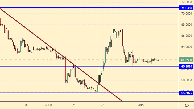 Покупка: сейчас. Стоп: 59.00. Цель: 71.00. Кто в позиции от 61.00 и 62.00, держите стоп на 59.00. Цель: 71.00.