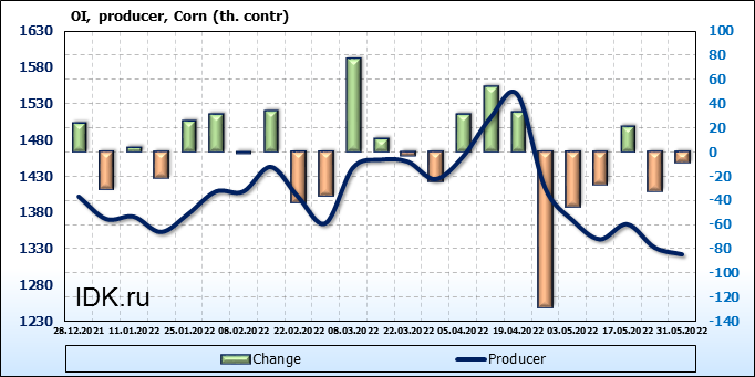 Открытый интерес производителей упал на 9 тыс. контрактов. Объем контрактов, направленных на хеджирование, составляет 1 322 395 штук. Деньги производителей в течение прошлой недели уходили с рынка не видя привлекательности в текущей ситуации.