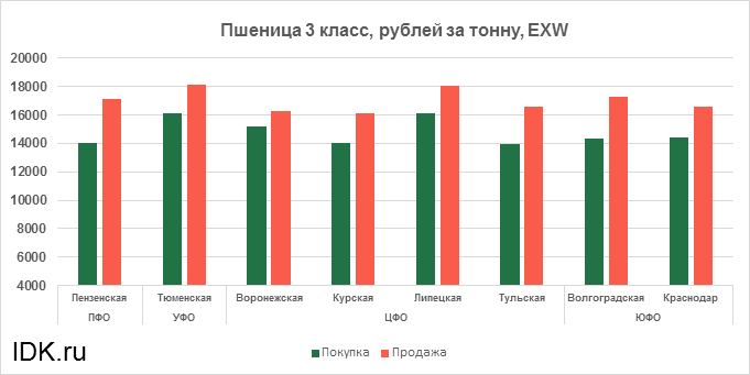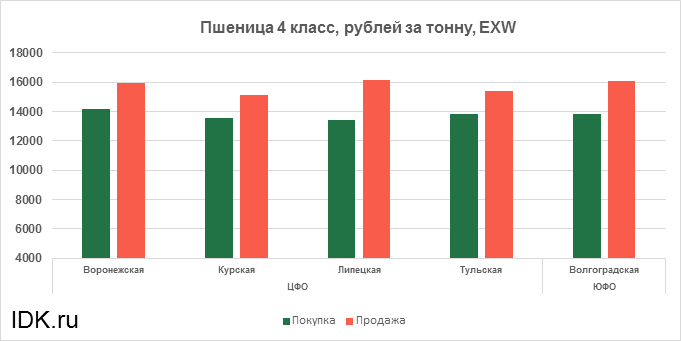В ЮФО цена упала на 1487 рублей, до 15603 рублей за тонну.