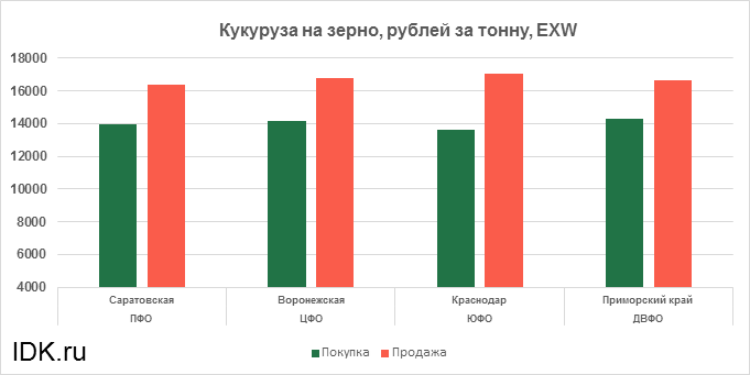 За прошедшую неделю с 30.05.2022 по 03.06.2022 средняя цена кукурузы на зерно, согласно выставленным заявкам трейдеров, упала по всем округам на 173 рубля. Средняя цена составляет 15332 рубля за тонну.