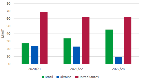 Прогнозируется, что Китай станет крупнейшим в мире импортером кукурузы как в 2021/22, так и в 2022/23 годах, хотя импорт снизится по сравнению с предыдущим годом до 18,0 млн тонн в основном из-за вышеупомянутых ограничений в Украине. Как обсуждалось в публикации за февраль 2022 года, импорт кукурузы в Китай отличается высокой концентрацией. Хотя сроки и потенциальный объем импорта бразильской кукурузы не определены, это соглашение представляет собой попытку диверсификации для Китая, а также потенциальный крупный рынок для Бразилии.