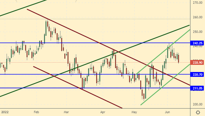 Покупка: нет. Кто в позиции от 211.0 и 217.0, держите стоп на 221.00. Цель: 248.00.