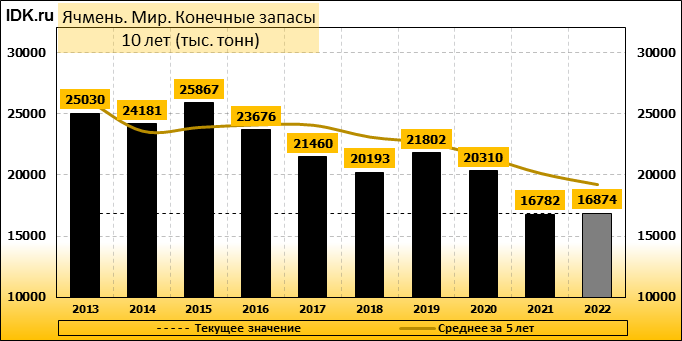 Конечные запасы: составят 16874 тысячи тонн. Оценка с последнего отчета снизилась на -0.08 процента.