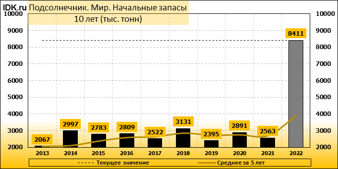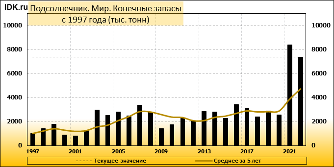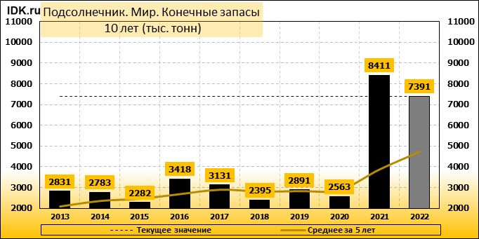Конечные запасы: составят 7391 тысячу тонн. Оценка с последнего отчета снизилась на -5.11 процента.