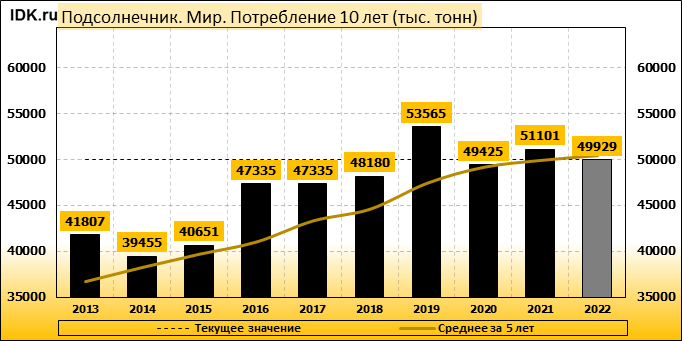 Потребление: показатель пересмотрен в сторону понижения до 49929 тысяч тонн. Значение упало на -0.4 процента.