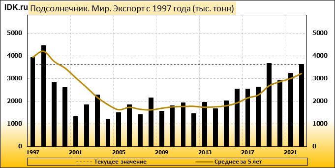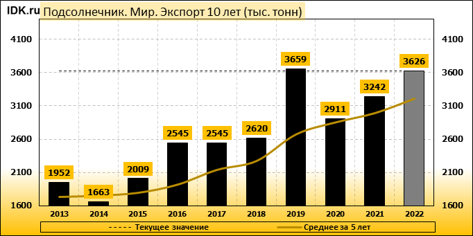 Экспорт: оценивается в 3626 тысяч тонн. За месяц показатель упал на -2.68 процента.