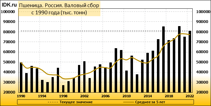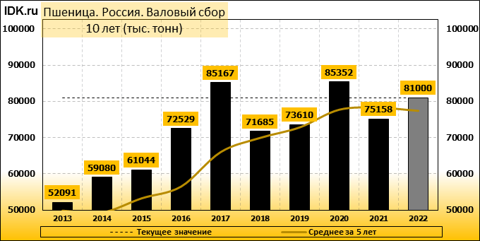 Валовый сбор: оценка пересмотрена в сторону повышения до 81000 тысяч тонн. Показатель вырос на 1.25 процента.