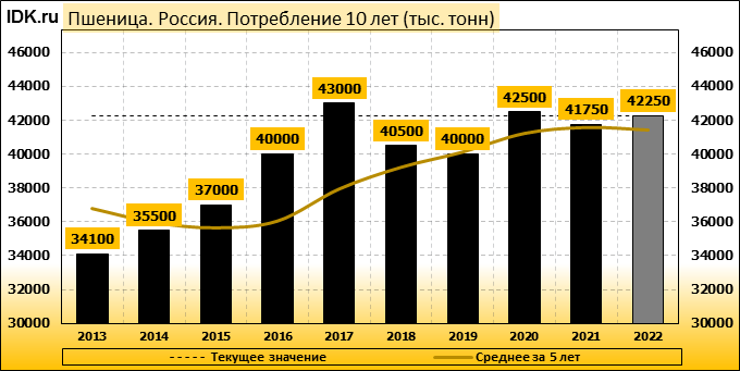 Потребление: показатель не изменился и составляет 42250 тысяч тонн.