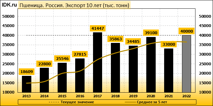 Экспорт: оценивается в 40000 тысяч тонн. За месяц показатель вырос на 2.56 процента.