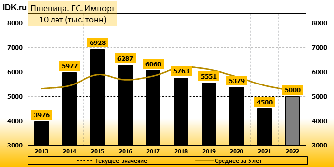 Импорт: составит 5000 тысяч тонн. Значение по прошествии месяца не изменилось.