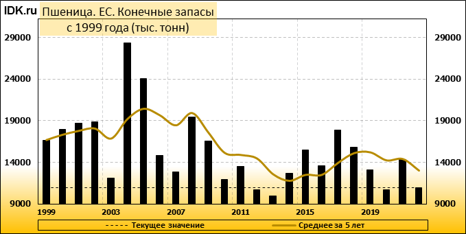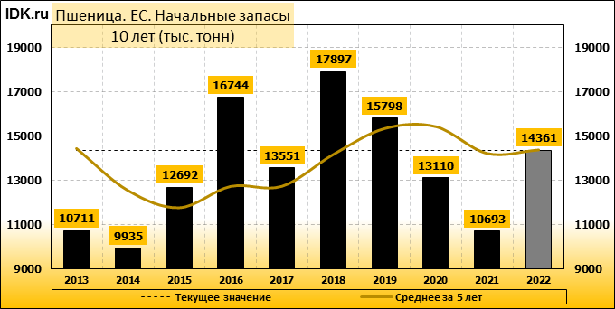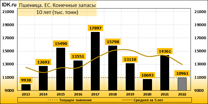 Конечные запасы: составят 10961 тысячу тонн. Оценка с последнего отчета подросла на 3.3 процента.