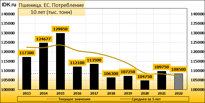 Потребление: показатель не изменился и составляет 108500 тысяч тонн.
