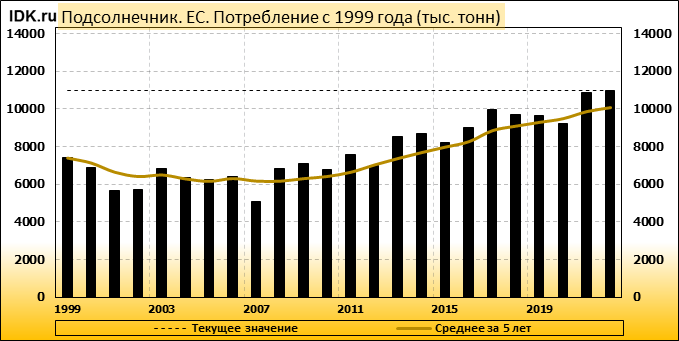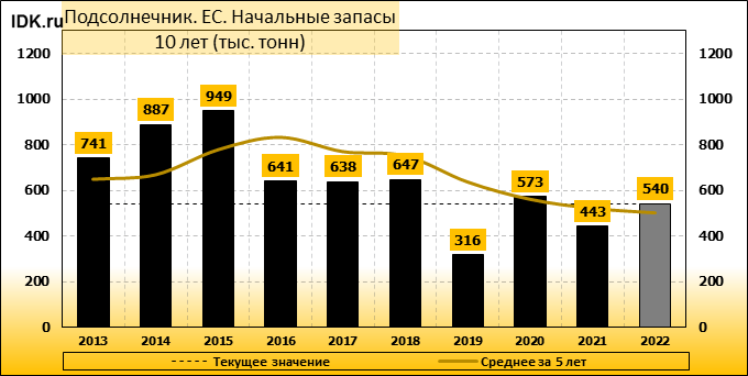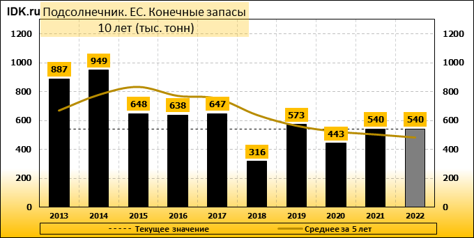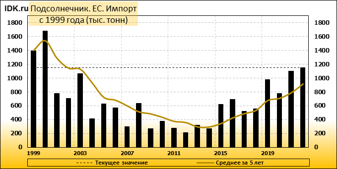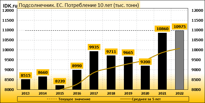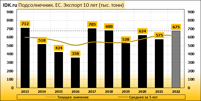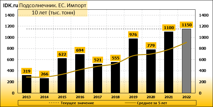 В настоящее время ожидается, что производство масличных культур в ЕС значительно увеличится благодаря увеличению площади (+6%, в частности за счет подсолнечника) при прогнозируемом увеличении производства на тот же процент. Это позволит рынку ЕС справиться с сокращением поставок масличных культур из Украины.