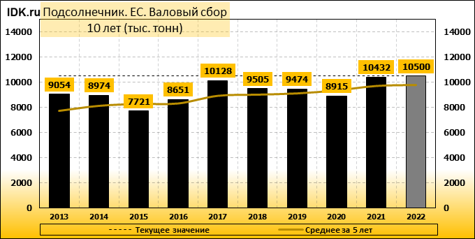 Валовый сбор: оценка не изменилась и составляет 10500 тысяч тонн.