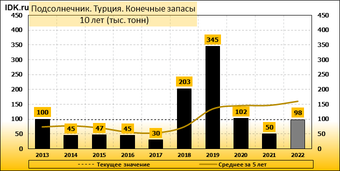 Конечные запасы: составят 98 тысяч тонн. Оценка с последнего отчета не изменилась.