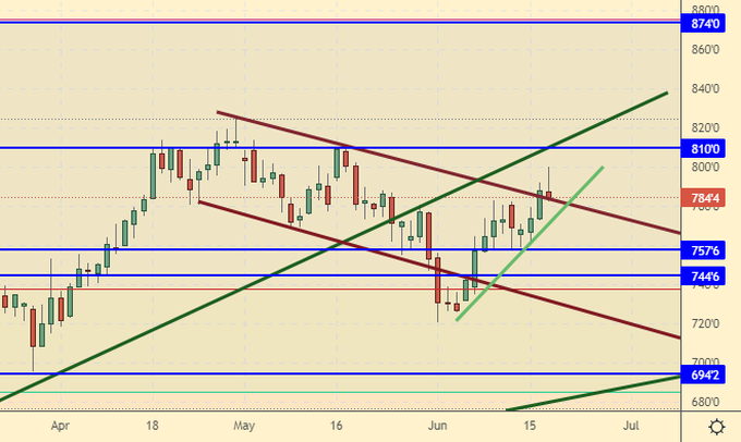 Сценарий роста: рассматриваем августовский фьючерс, дата экспирации 20 июля. Возьмем паузу на неделю и посмотрим за развитием событий.