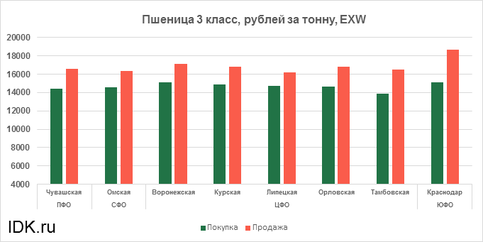 За прошедшую неделю с 13.06.2022 по 17.06.2022 средняя цена на пшеницу 3-го класса, согласно выставленным заявкам трейдеров, выросла по всем округам на 385 рублей. Средняя цена составляет 15866 рублей за тонну.