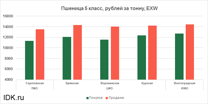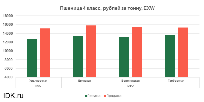 За прошедшую неделю с 13.06.2022 по 17.06.2022 средняя цена на пшеницу 4-го класса, согласно выставленным заявкам трейдеров, упала по всем округам на 297 рублей. Средняя цена составляет 14185 рублей за тонну.