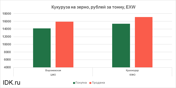 За прошедшую неделю с 13.06.2022 по 17.06.2022 средняя цена кукурузы на зерно, согласно выставленным заявкам трейдеров, выросла по всем округам на 223 рубля. Средняя цена составляет 15636 рублей за тонну.