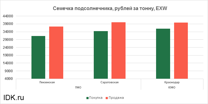 За прошедшую неделю с 13.06.2022 по 17.06.2022 средняя цена семечки подсолнечника, согласно выставленным заявкам трейдеров, выросла по всем округам на 2013 рублей. Средняя цена составляет 36585 рублей за тонну.