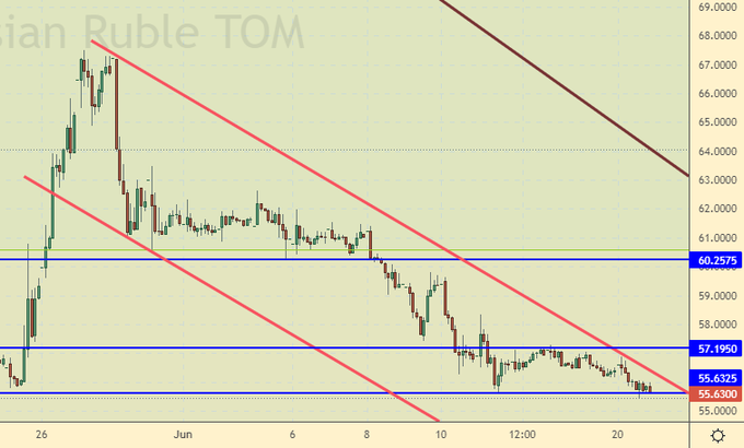Продавцы продолжают давить. Пока нет ни единого фундаментального признака, который бы дал нам намек на возможный рост доллара к рублю. При таких ценах на энергоносители сальдо платежного баланса будет оставаться положительным даже если упавший на 50% импорт в страну полностью восстановится.
