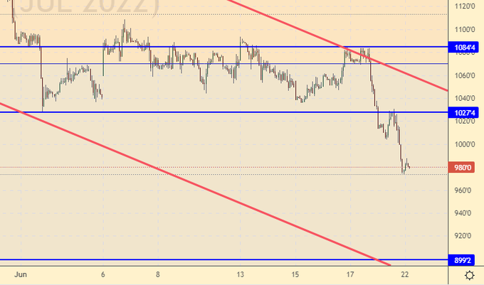 Пшеница (июльский контракт, CME Group, исполнение 14.07.2022)