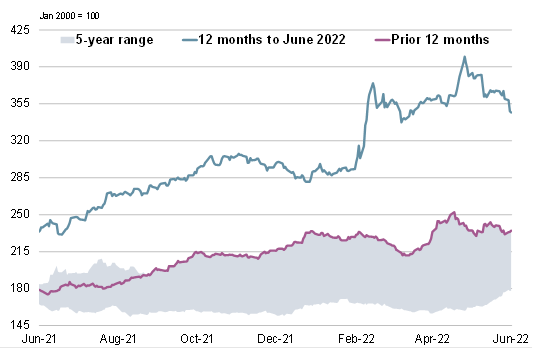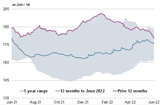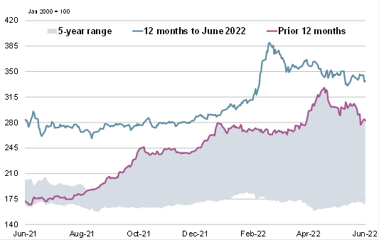В основном в связи с пересмотром прогноза для кукурузы в Украине, где посевные площади превзошли первоначальные ожидания, мировое производство зерна в 2022/23 г. повышено на 4 млн тонн по сравнению с майским отчетом. Несмотря на то, что прогнозируемое потребление немного повышено, большая часть увеличения предложения переходит в остатки, которые прогнозируются на 3 млн тонн выше, чем раньше, на уровне 583 млн. Ожидается, что объем торговли упадет до 405 млн тонн, повышение на 1 млн месяц к месяцу.