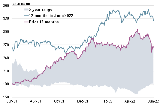 Субиндекс IGC GOI по пшенице упал на 12% из-за спекуляций на тему экспортных коридоров в Причерноморье, а также расширения экономических опасений и нарастающего сезонного давления в северном полушарии.
