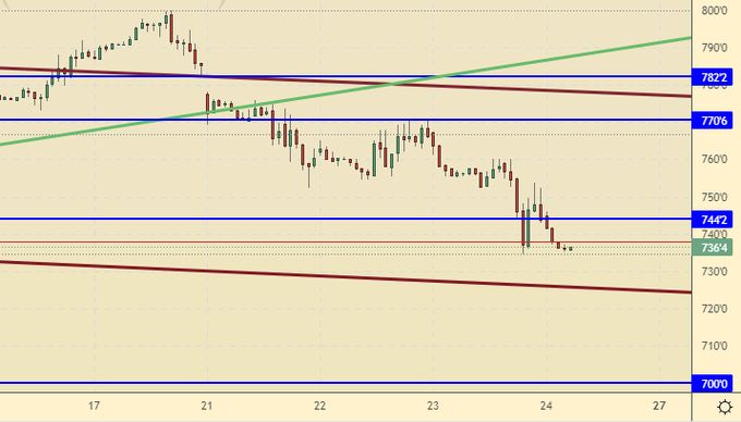 Продажа: нет. Кто в позиции от 770.0, перенесите стоп на 767.0. Цель: 700.0.