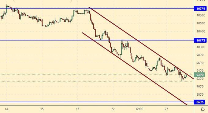Пока продолжаем рассуждать об уровне 860.0 как о возможной конечной точке текущего падения. Не исключено, что мы развернемся и с текущих уровней вверх.