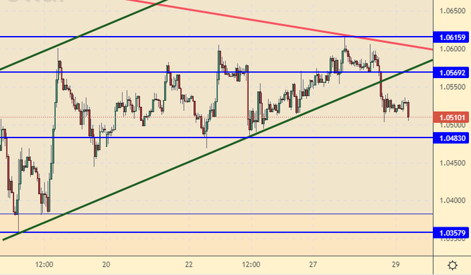 Продажа: нет. Кто в позиции от 1.0570, перенесите стоп на 1.0580. Цель: 0.9700.