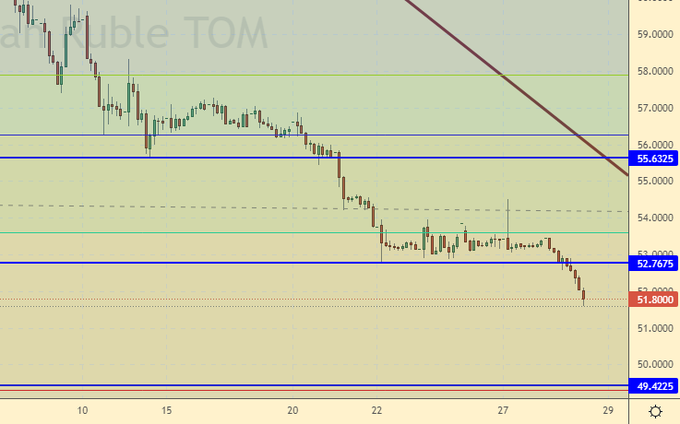 Пара способна достигнуть района 50.00. Возможно, что там будут какие-то покупки, но навес со стороны долларов продолжает сохраняться. Что делать с американскими деньгами не очень понятно, так как сами же США своими санкциями торпедировали нормальную работу бизнеса.