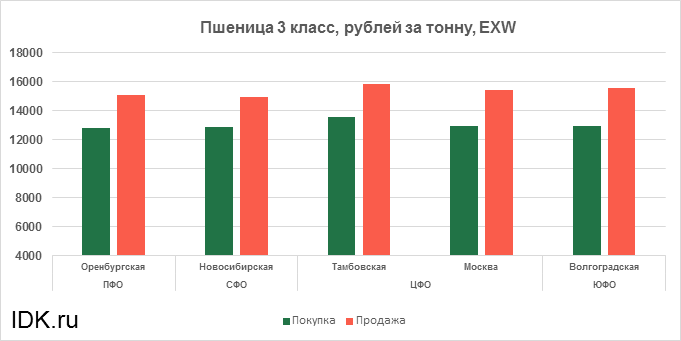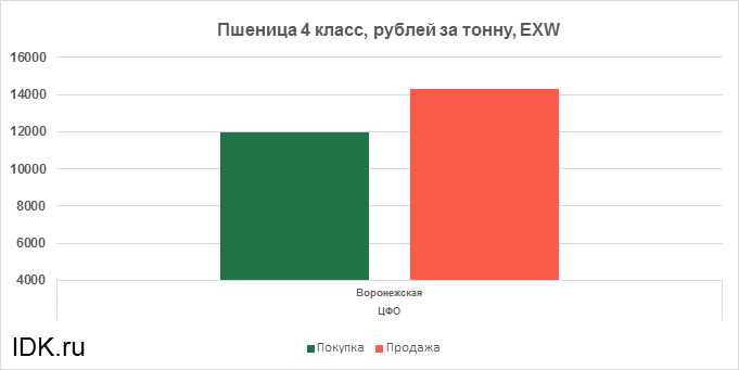 За прошедшую неделю с 27.06.2022 по 01.07.2022 средняя цена на пшеницу 4-го класса, согласно выставленным заявкам трейдеров, упала по всем округам на 568 рублей. Средняя цена составляет 13147 рублей за тонну.