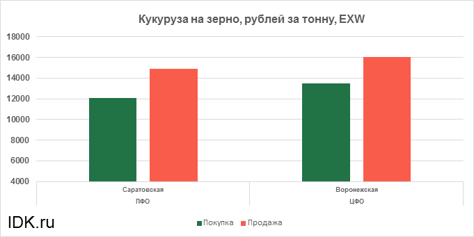 За прошедшую неделю с 27.06.2022 по 01.07.2022 средняя цена кукурузы на зерно, согласно выставленным заявкам трейдеров, упала по всем округам на 364 рубля. Средняя цена составляет 14136 рублей за тонну.