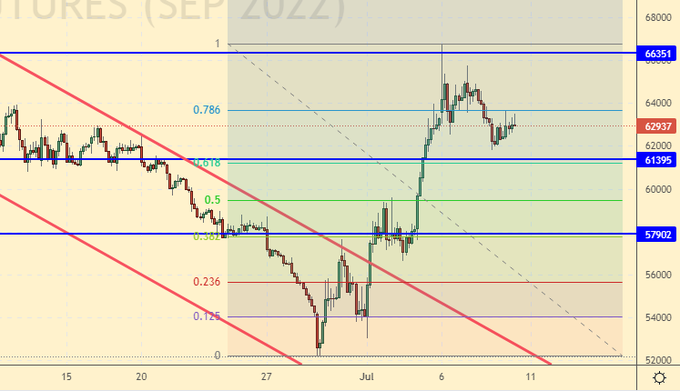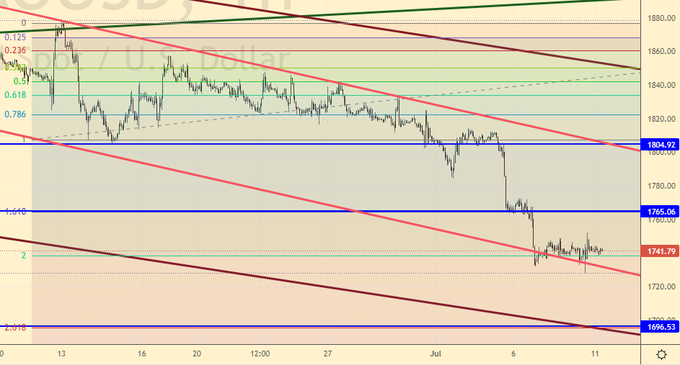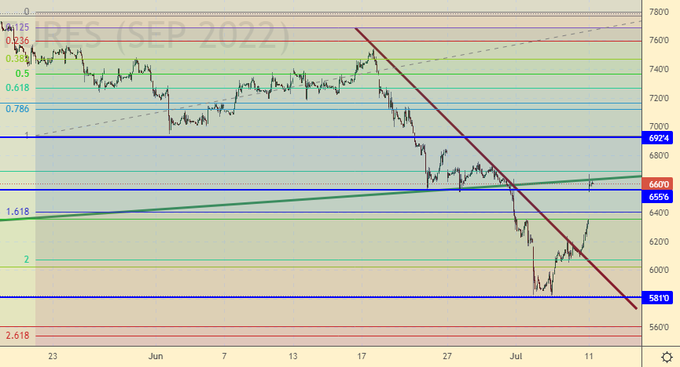 Пока все говорит за то, что мы должны увидеть удар в 1700. После чего можно будет рассуждать о развороте рынка вверх. Пока комментарии представителей ФРС о том, что нужно повышать ставку на 0.75% 27-го июля будут сдерживать атаки быков на этом рынке.