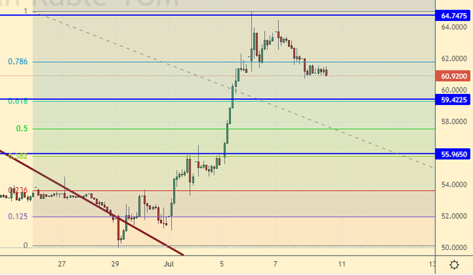 Было бы неплохим ходом купить от 56.00. Если рынок упадет к обозначенному уровню – входите в лонг. Даже если со стороны Правительства будут заявлены какие-то меры, еще не факт, что рынок сочтет их достаточными для ослабления курса рубля.