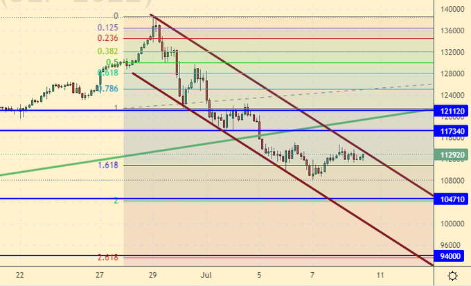Продажа: при подъеме к 120000. Стоп: 123000. Цель: 100000.