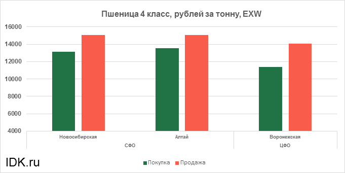 За прошедшую неделю с 04.07.2022 по 08.07.2022 средняя цена на пшеницу 4-го класса, согласно выставленным заявкам трейдеров, упала по всем округам на 432 рубля. Средняя цена составляет 13455 рублей за тонну.