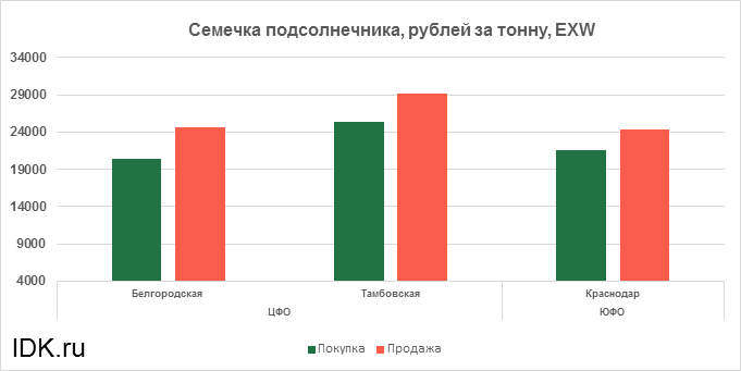 За прошедшую неделю с 04.07.2022 по 08.07.2022 средняя цена семечки подсолнечника, согласно выставленным заявкам трейдеров, упала по всем округам на 5564 рубля. Средняя цена составляет 23004 рубля за тонну.
