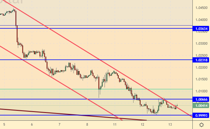 Дошли до паритета! Событие для этой пары не рядовое, поэтому стоит на него обратить внимание. Возможна некоторая пауза в спуске, но после заседания ЕЦБ 21-го числа мы продолжим падать к 0.9700.