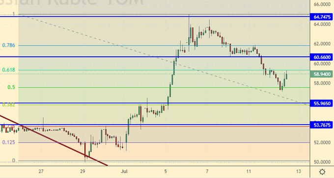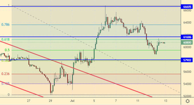 Покупка: при откате к 56000. Стоп: 54400. Цель: 75000. Если вы вошли от 59000, перенесите стоп на 57700. Цель: 75000.