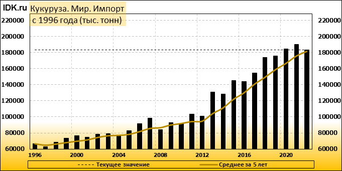 Импорт: составит 183397 тысяч тонн. Значение по прошествии месяца поднялось на 0.11 процента.
