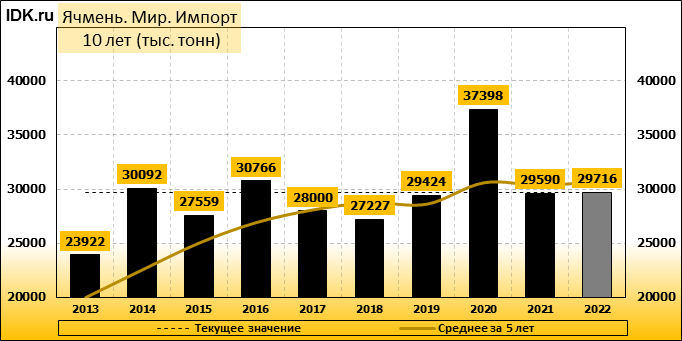Импорт: составит 29716 тысяч тонн. Значение по прошествии месяца упало на -2.62 процента.