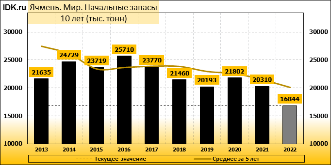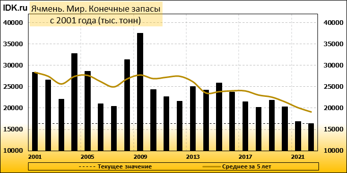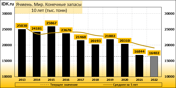 Конечные запасы: составят 16402 тысячи тонн. Оценка с последнего отчета снизилась на -2.8 процента.