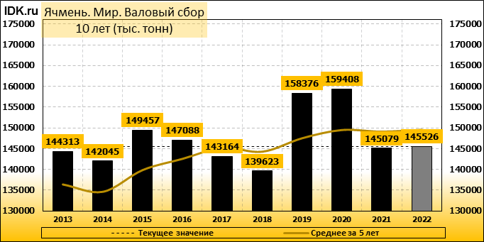 Валовый сбор: оценка пересмотрена в сторону понижения до 145526 тысяч тонн. Показатель упал на -1.18 процента.