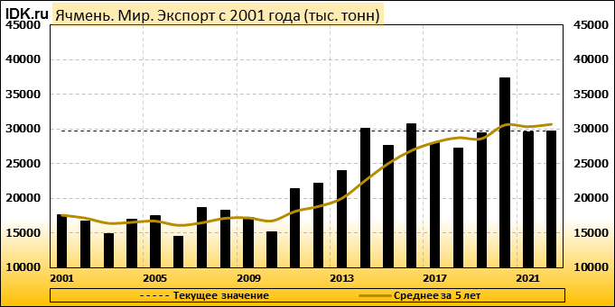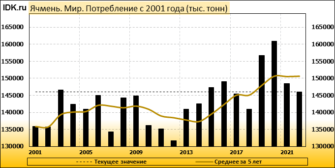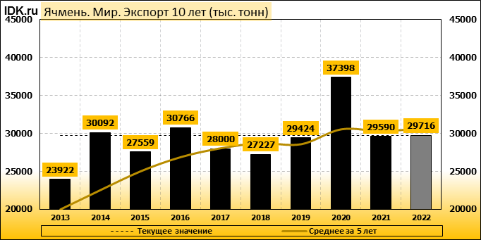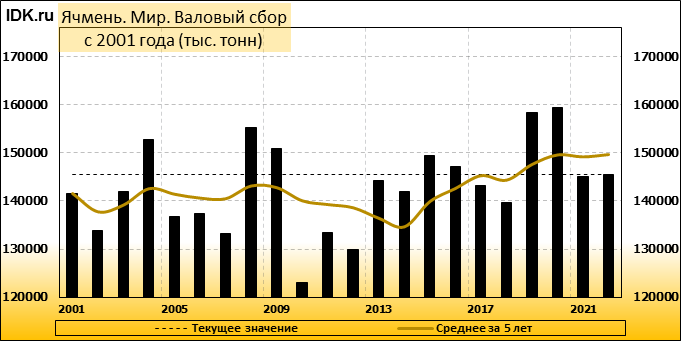 Согласно июльскому отчету МСХ США, прогноз мирового производства ячменя в 2022/23 году снижен на 1,73 млн тонн или 1,18 процента по сравнению с прошлым месяцем до 145,53 млн тонн. При этом прогноз производства сильнее всего снижен для Европейского Союза – на 0,80 млн. тонн (1,55 процента) до 50,90 млн тонн и для Канады – на 0,80 млн тонн (7,62 процента) до 9,70 млн тонн. Прогноз экспорта ячменя из Канады понижен на 0,50 млн тонн до 3,00 млн тонн, прогноз экспорта ячменя из Европейского Союза понижен на 0,30 млн тонн до 6,80 млн тонн.