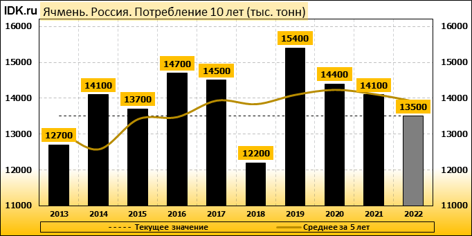 Потребление: показатель не изменился и составляет 13500 тысяч тонн.